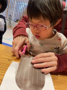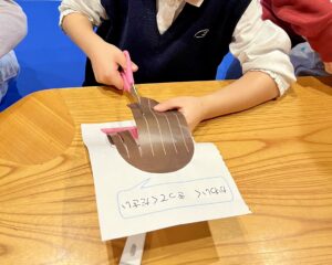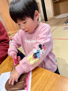 その後はお部屋に戻ってハサミの練習をしました。お山崩しで指先の運動をしたの準備運動はばっちりです!