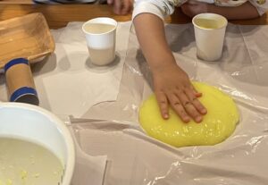 スライム作りではだんだんと変化していく過程をみたりお友だちと一緒に作ることへの楽しさ