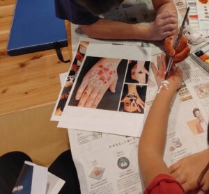ソーシャルスキルトレーニングの日に、子ども達同士でペアになってハンドアートを行いました。