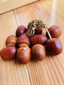 今日は、どんぐりを使って子どもたちと駒を作るための試作をしました。