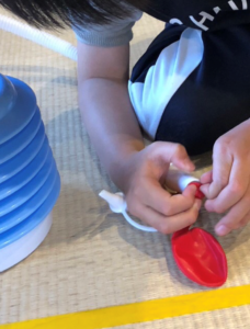 「先生見て!ひとりでこんなに大きく膨らませたで!」