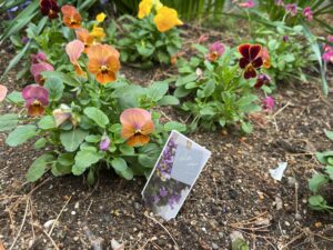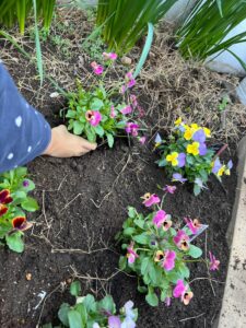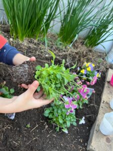 まんまるの庭では、子どもたちと一緒にビオラの花壇を作りました。