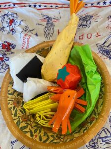それぞれが見本の中から作りたい具材を作りチームで協力して一個のお弁当を完成させることを目指し頑張って工作に挑みました。