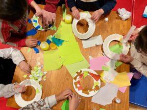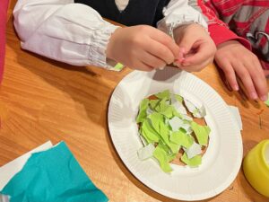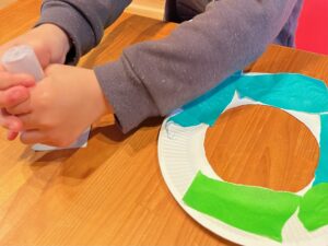 先日、感覚統合療法の活動で紙皿を使ったクリスマスリース作りを行いました!