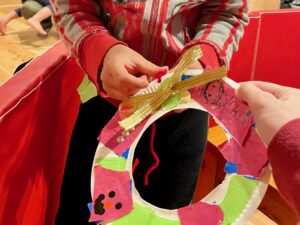 「キラキラがいい!」「銀色にするー」とみんなそれぞれ発想豊かにリースを作ってくれました。