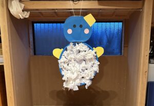 床一面に散りばめられたティッシュを拾い、丸め雪だるまを完成させて遊びました。