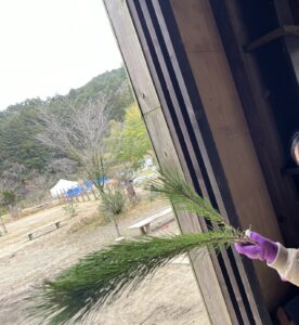 事業所に飾ってあった松飾りやしめ縄を子どもたちに解体してもらい、お焚き上げの準備をしていきます。