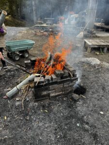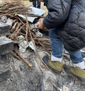 薪の準備ができたら、この日キャプテンだった子どもたちに火をつけてもらいました🔥