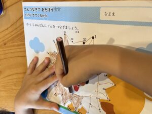 先日ビジョントレーニングで点つなぎ、線なぞりと動物タッチゲームをしました!