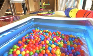 ボールプールに入ることで手先から足の指先まで全身の触覚が刺激されますので、