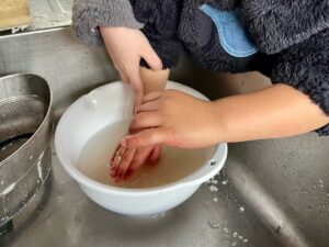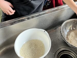 それでも冷水の冷たさに負けず、上手にお米を洗ってくれました。