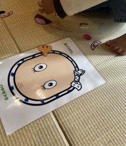 皆で福笑いの顔のパーツを完成させるために顔に目や口を貼っていきました。出来上がった顔を見て、どんな表情がどんな感情を持っているかなどを共有することができていました。色々な表情の顔が出来上がり、子どもたち同士で笑いあったり、会話をしたりたくさん関わりが見られた一日でした。また、お正月遊びでは他にコマ回しや羽根つきなども行い、行事を通していろいろな遊びを知ることができていました。