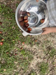 提携農園に到着すると「栗だー!」と栗を見つけ秋の訪れを感じました。