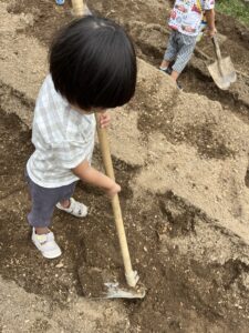手足の動きと農機具を視覚と連携させて使いこなすことで識別能力を養うことを目的としています。