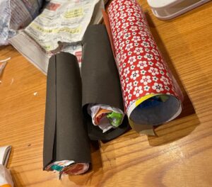 「こんな具材をいれたい!」という子どもたちの要望にあわせて、食材と同じ色の紙をくしゃくしゃにしていきます。