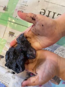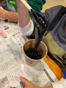 子どもたちは各々好きな色を選んで、材料をまぜまぜ。