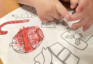 絵の具を乾かしている間に、折り紙・塗り絵・シール・モール・綿・フェルト等様々な材料を自由に使って飾りを作ります。