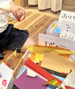 おともだちが作っていた飾りの作り方を教えてもらったりすることで会話が生まれます。