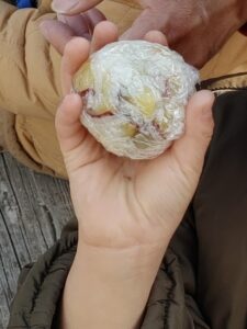 ご飯が炊きあがったら、ラップに小分けにしてみんなで握り、おにぎりづくりをしました。