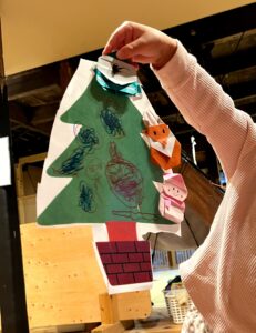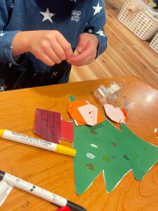 ツリーを切り終え子どもたちは、サンタたちを飾り、絵を描いたり、大きな☆星を作ったりオリジナルのワクワク楽しいツリーの出来上がり❣