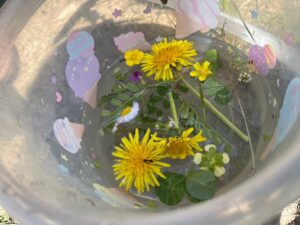子どもたちは見たことのない花や、よく見かけるけど名前を知らない花をたくさん集め、それぞれのバケツに飾りました!