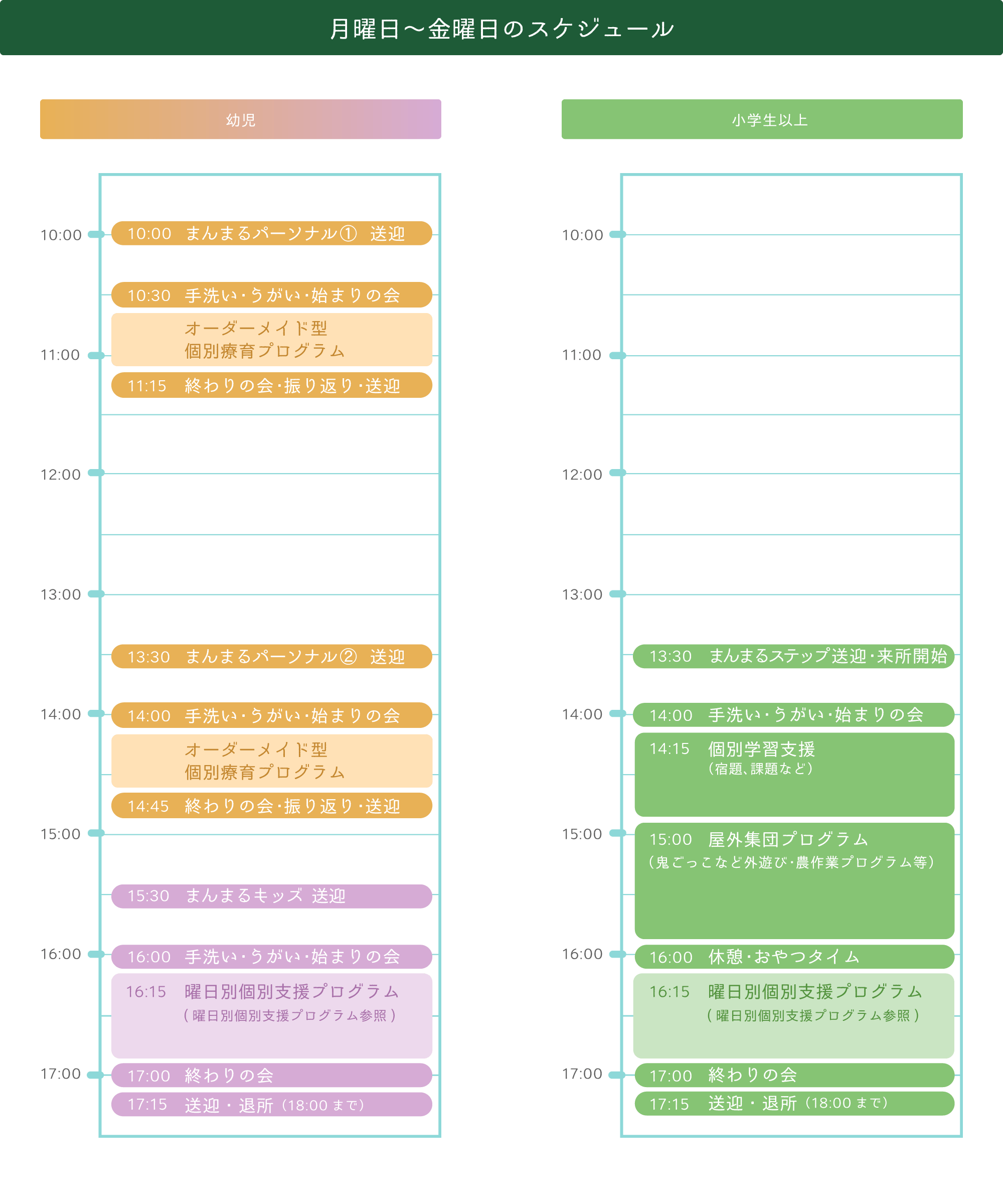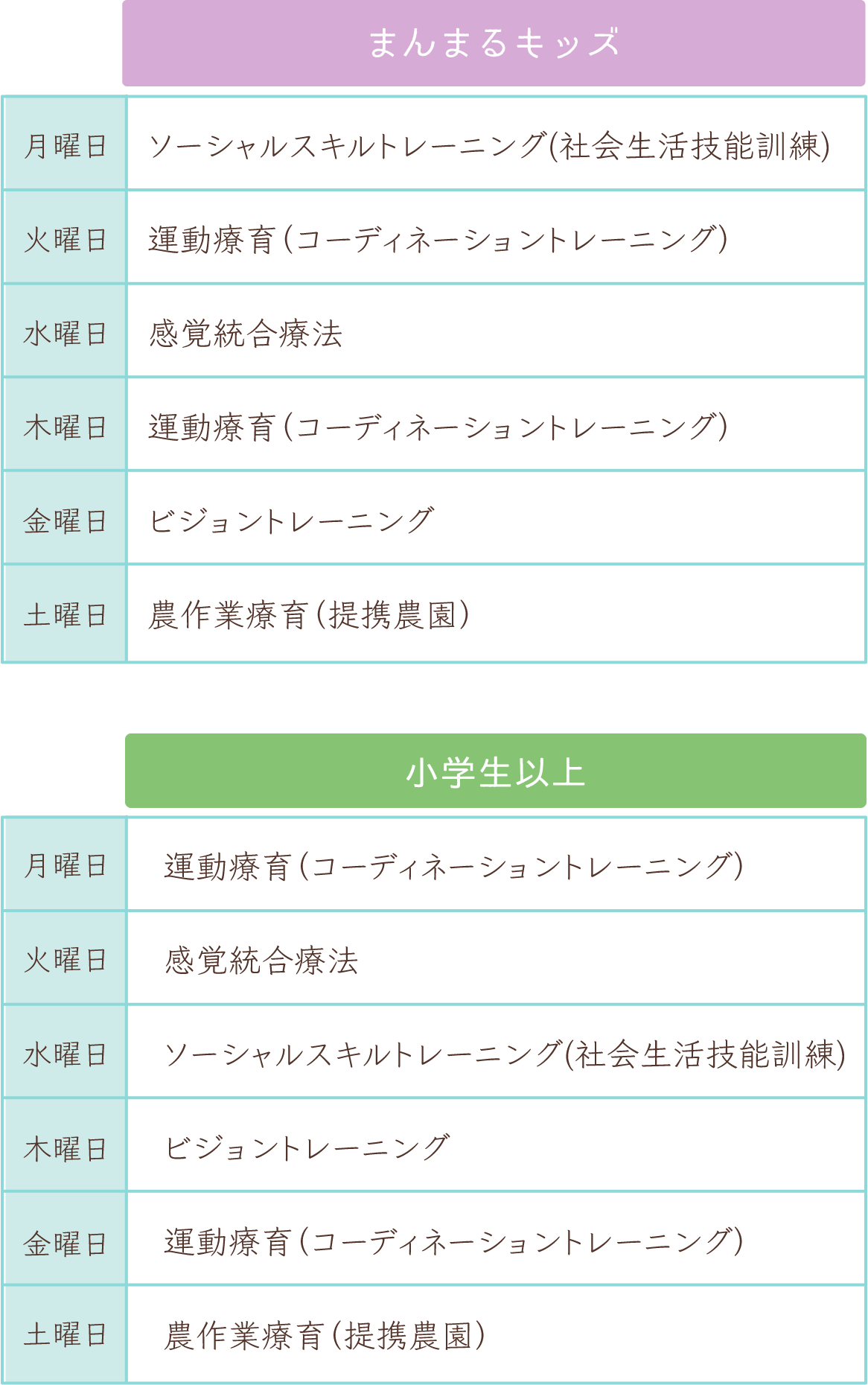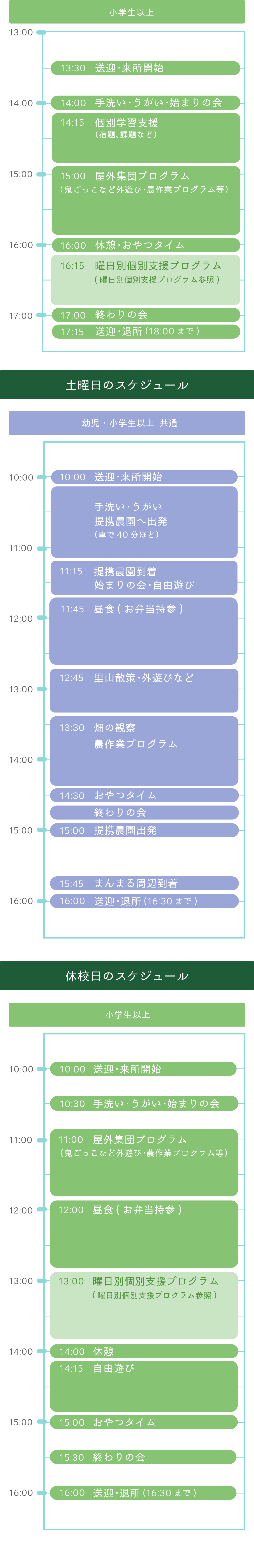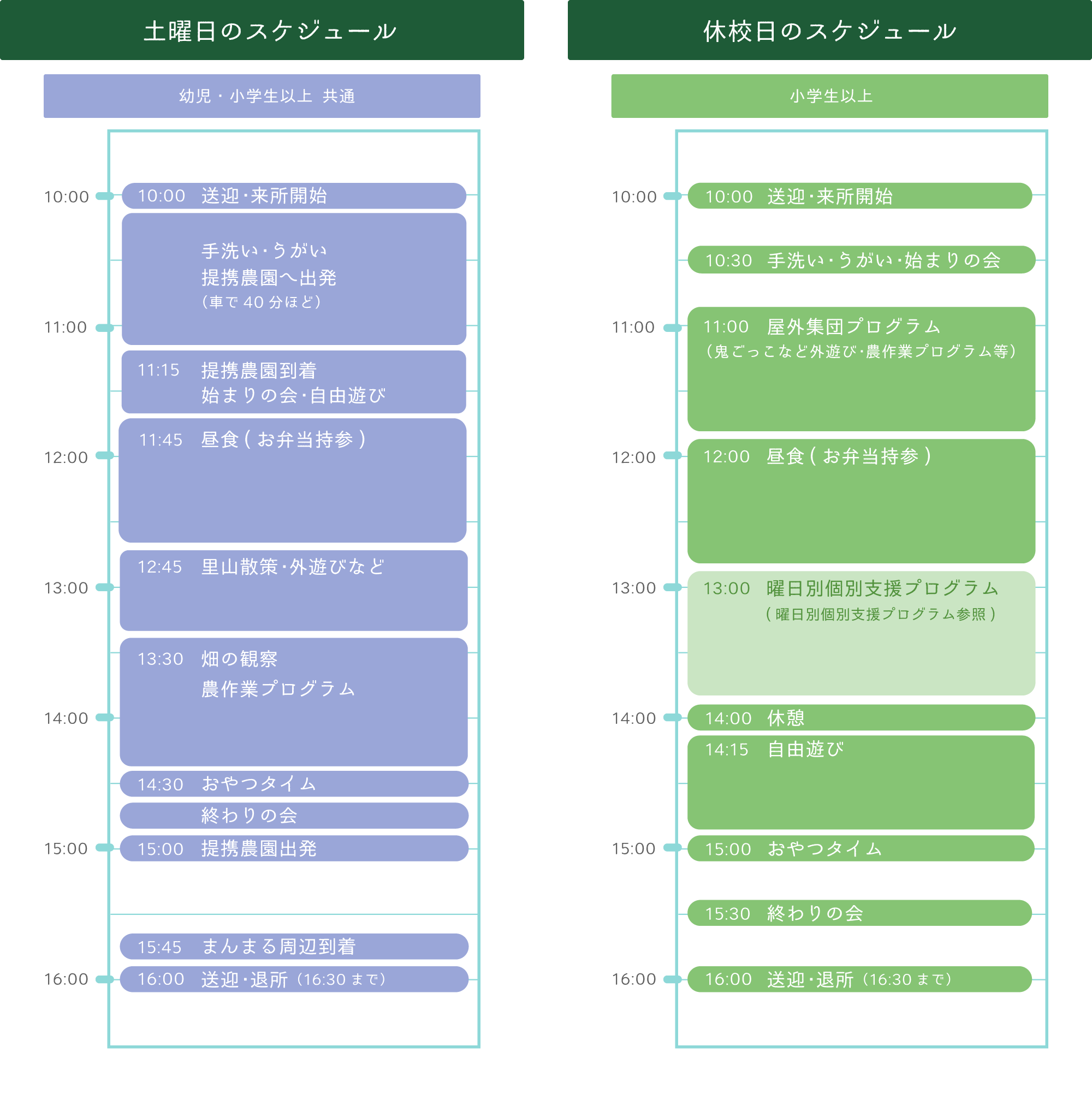 ※週により変更される場合もあります。※学校休業日は月曜日~金曜日も提携農園へ出かけることがあります。※土曜日のみの登録はできません。