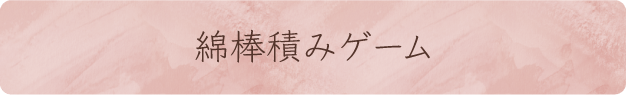 綿棒積みゲームは、みんなで協力して綿棒をクロスさせて積み上げていきます。ひとつの目標に向かってみんなで協力することで協調性を育み、目標を達成できた際には大いに喜びを分かち合うことにより集団で活動する楽しさを知ってもらいます。