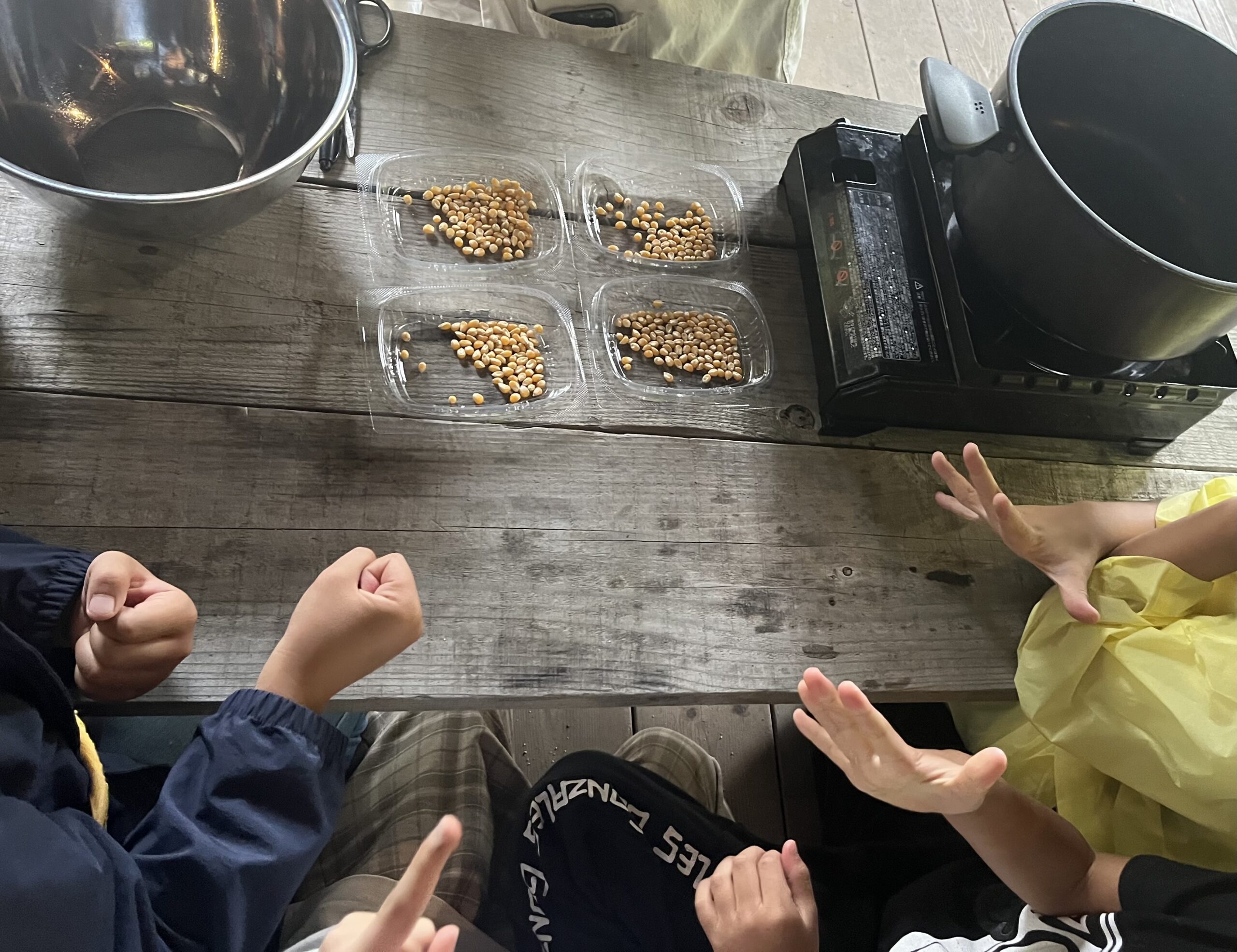 みんなでポップコーンづくり!